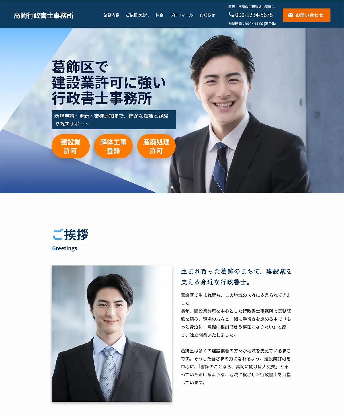 建設業許可に特化した、信頼感重視の行政書士サイト